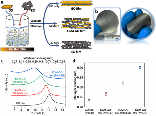 圖2. 片層間距可調節的復合石墨烯薄膜的結構表征