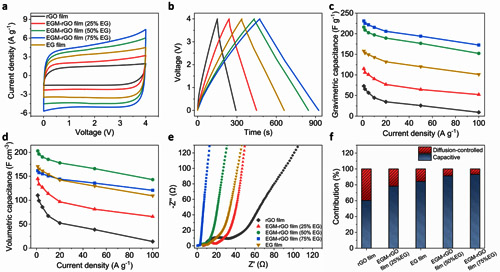 圖3. 片層間距可調節的復合石墨烯薄膜的電化學表征