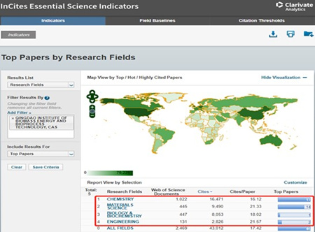 今年1月,基本科學指標數據庫(Essential Science Indicators,簡稱ESI)公布的最新數據顯示,我所工程科學(Engineering)學科進入ESI全球前1%學科序列。此前,我所已經有化學(Chemistry)、生物與生化(Biology & Biochemistry)、材料科學(Materials Sciences)3個學科進入ESI全球前1%學科序列。