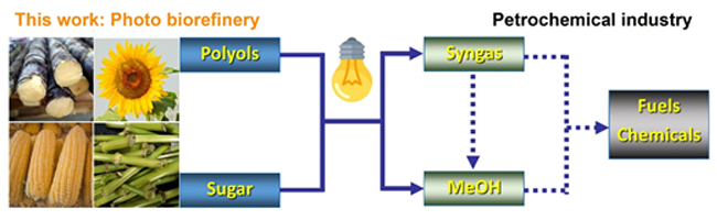 近日,大連化物所生物能源化學品研究組(DNL603)王峰研究員團隊利用光催化的方法,實現了溫和條件下生物質多元醇裂解制備甲醇和合成氣,為生物質轉化利用提供了新思路。