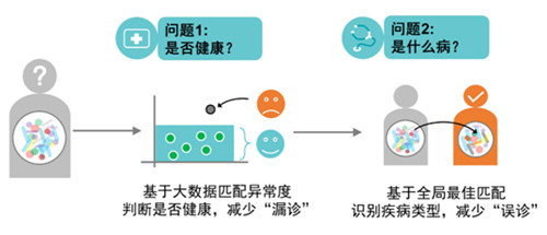 圖1、基于菌群大數(shù)據(jù)搜索引擎實(shí)現(xiàn)疾病檢測(cè)的原理