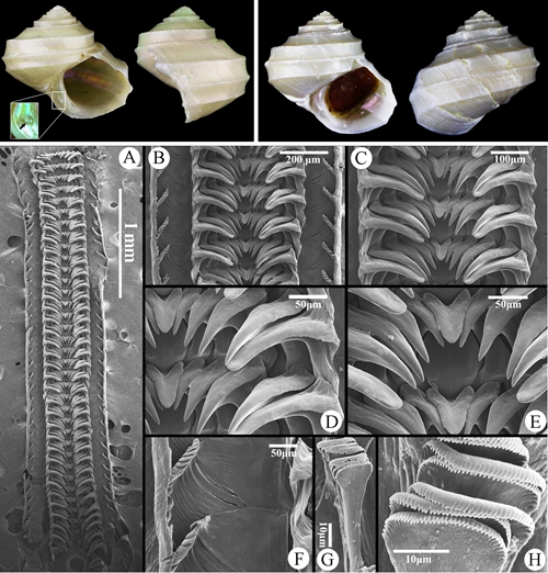 近日,《深海研究》(Deep-sea Research Part I, JCR 1區)在線發表了中國科學院海洋研究所海洋貝類分類與系統演化研究組的最新成果“Integrative taxonomy reveals new taxa of Trochidae (Gastropoda: Vetigastropoda) from seamounts in the tropical western Pacific”。該研究利用整合分類學方法發現了深海軟體動物馬蹄螺科2個新種,并為此建立了一新屬、新亞科。