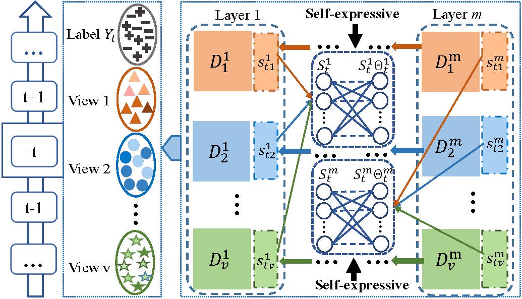 連續多視角學習模型示意圖(不同顏色表示不同的視角)