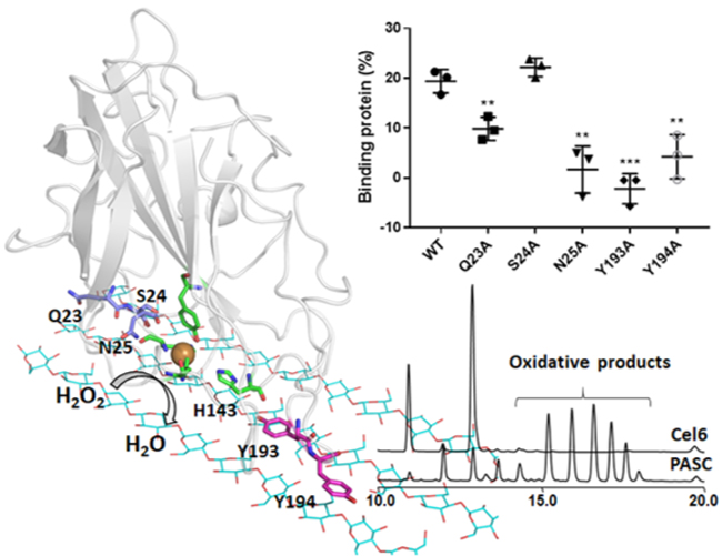 LPMO與纖維素的相互作用及關鍵氨基酸