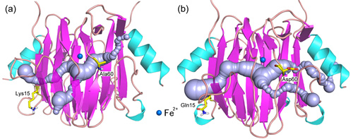 圖2 突變前后Dke1的結構變化示意圖(a為野生型,b為突變型)