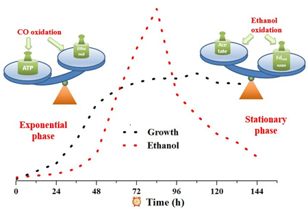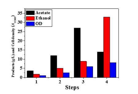 圖2. 永達爾梭菌轉化合成氣生產乙醇的階段進展圖