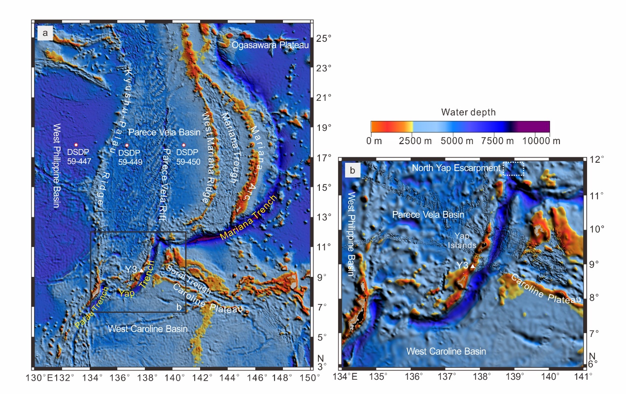 西太平洋是研究俯沖帶發育和演化的重要海區。雅浦島弧位于菲律賓海板塊、太平洋板塊和卡洛琳板塊之間的三聯點處,經受了復雜的板塊構造運動。雅浦島弧被認為最初與馬里亞納島弧起源于同一個島弧,但卻表現出與馬里亞納島弧截然不同的地形和構造發育歷史。一般認為,卡洛琳洋底高原與古雅浦島弧的相互作用對雅浦-馬里亞納俯沖帶的構造演化產生了嚴重影響。然而,關于二者之間碰撞發生的時代、雅浦島弧基巖性質和起源、雅浦島弧目前發育階段等都缺少明確的年代學和巖石地球化學證據。