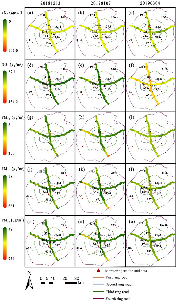 該成果以“Spatial distribution characteristics of gaseous pollutants and particulate matter inside a city in the heating season of Northeast China”為題發表在Sustainable Cities and Society上。中科院沈陽應用生態研究所景觀生態組李春林副研究員為第一作者,劉淼研究員為通訊作者。該研究得到了國家自然科學基金委重點項目、國家自然科學基金委面上項目的支持。