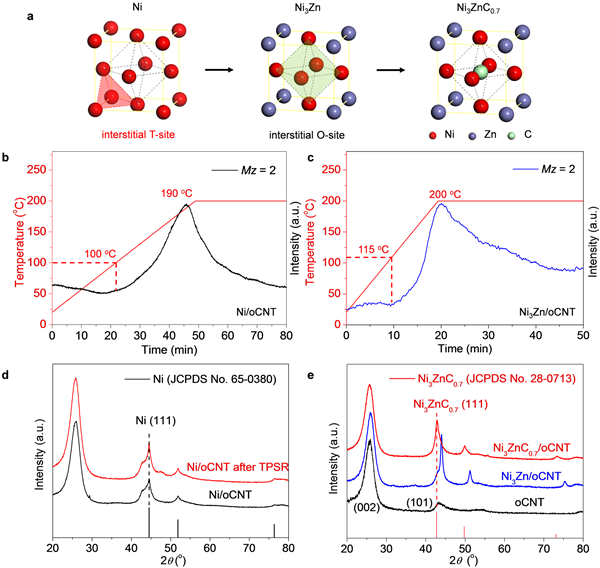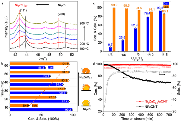 圖3. Ni3ZnC0.7結構原位形成及其乙炔選擇性加氫性能