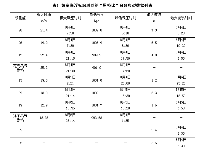 “黑格比”臺風登陸后繼續北上,直到8月5日5時由陸地轉移到黃海西部海域,黃海站位于青島和日照外海的09號和19號浮標先后捕獲到臺風數據,極大風速為18.0m/s,最大波高為2.3m。隨著臺風繼續向東北方向移動,位于北黃海的長海縣海島氣象站、05號浮標和02號浮標也獲取到臺風極大風速18.3m/s,最大波高為3.5m。這些浮標觀測數據均實時與青島市氣象局、日照市氣象局和合作共建等的養殖企業共享,為黃海沿岸地區氣象預報和防臺減災預報等提供有力數據支撐。