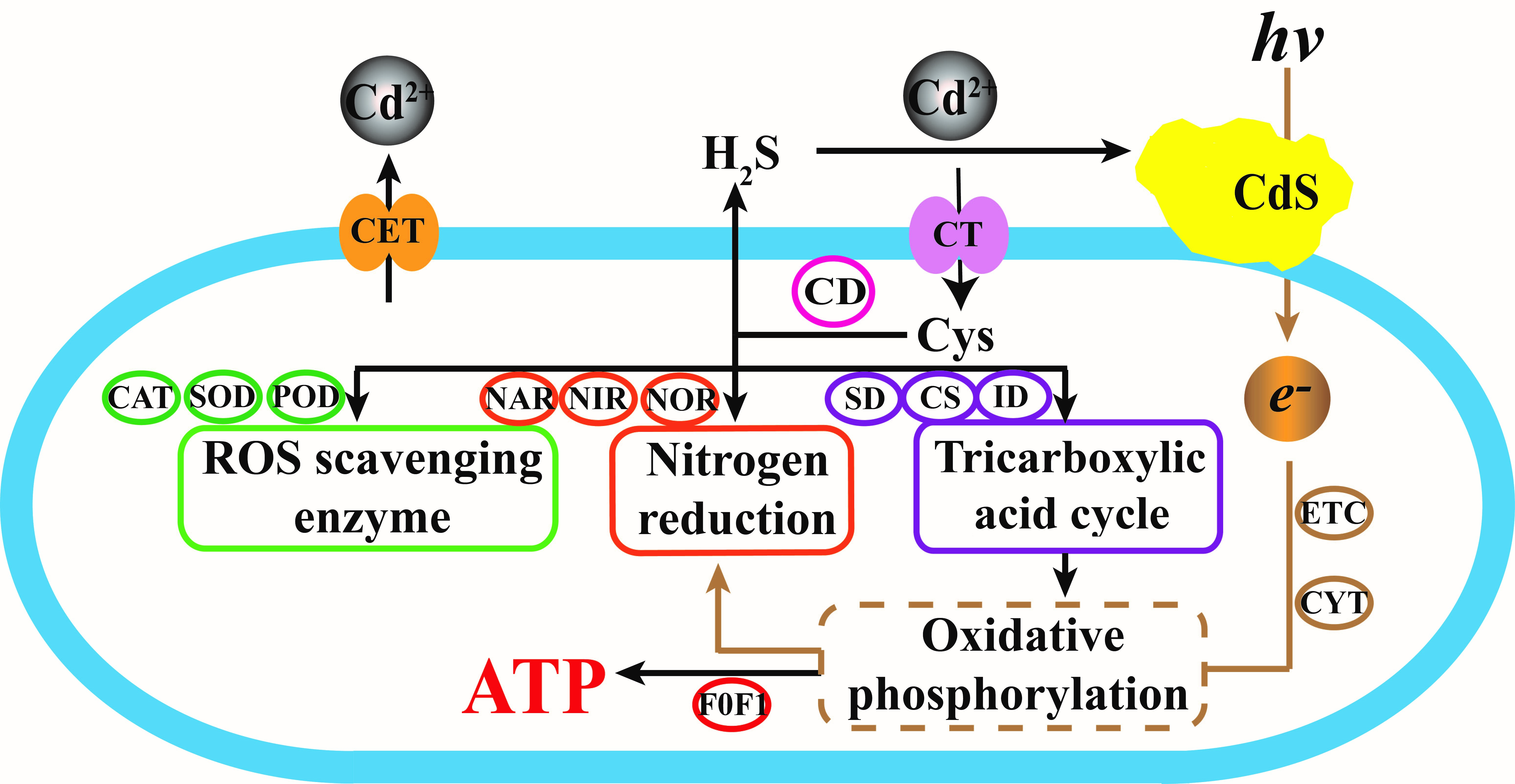 深海熱液細菌基于硫化鎘納米顆粒利用光能模式圖