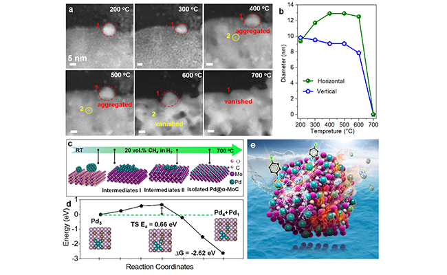 近日,中國科學院大連化學物理研究所副研究員劉岳峰團隊和王愛琴研究員、張濤院士團隊,與法國斯特拉斯堡大學、德國馬普協會化學能源轉化研究所、四川大學等團隊合作,在闡明碳化鉬( -MoC)負載高密度單原子Pd基催化劑的穩定機制,以及在選擇加氫反應中的獨特催化性能方面取得新進展。