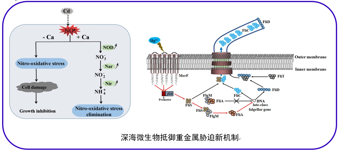 9月17日和10月12日,國(guó)際微生物學(xué)期刊Environmental Microbiology在線連續(xù)刊發(fā)了題為“Calcium protects bacteria against cadmium stress via reducing nitric oxide production and increasing iron acquisition”及“MerF is a novel regulator of deep-sea Pseudomonas stutzeri flagellum biogenesis and motility”的文章,報(bào)道了中國(guó)科學(xué)院海洋研究所孫超岷研究組關(guān)于深海冷泉和海山生境細(xì)菌應(yīng)對(duì)重金屬鎘及汞的新機(jī)制。