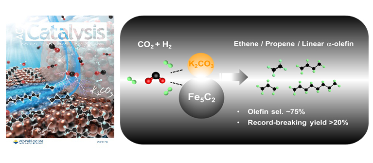 近日,中國科學院大連化學物理研究所副研究員孫劍和研究員葛慶杰團隊在二氧化碳催化加氫中的界面效應研究方面取得新進展,發現可碳化的系列K助劑可在二氧化碳加氫的氣氛中誘導鐵基催化劑形成獨特的高活性Fe5C2-K2CO3界面,大幅促進乙烯、丙烯和線性 -烯烴的生成。