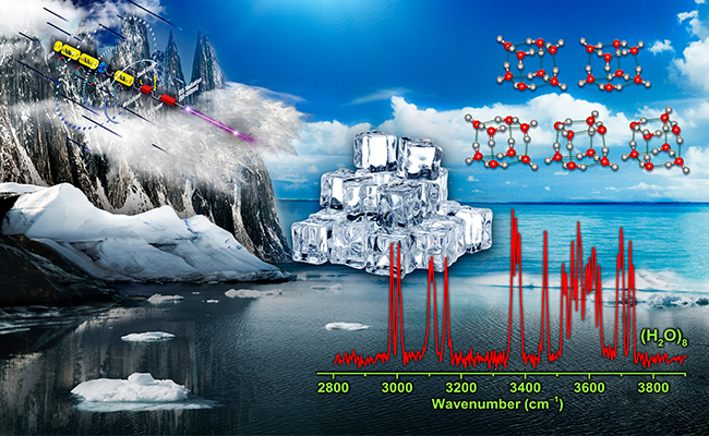 近日,中國科學院大連化學物理研究所研究員江凌和院士楊學明團隊與清華大學教授李雋團隊合作,利用自主研制的基于大連相干光源的中性團簇紅外光譜實驗方法,發現了多個最小冰立方的新結構,這些最小冰立方是由八個水分子組成的水團簇,該工作為揭開冰的微觀結構和形成機制提供了新的思路。