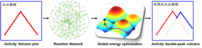 本工作揭示了在具有反應復雜網絡的情況下,由于反應路徑的差異,傳統的火山型曲線難以存在,取而代之的應該是多個頂點共存的火山型曲線。