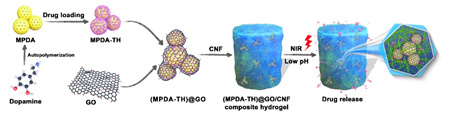 圖1. MPDA@GO/CNF復合水凝膠包封結構的設計及其可控藥物緩釋應用