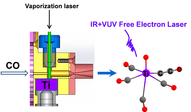 近日,中國(guó)科學(xué)院大連化學(xué)物理研究所分子反應(yīng)動(dòng)力學(xué)國(guó)家重點(diǎn)實(shí)驗(yàn)室、大連光源科學(xué)研究室研究員江凌團(tuán)隊(duì),與復(fù)旦大學(xué)教授周鳴飛團(tuán)隊(duì)合作,利用自主研制的基于大連相干光源的中性團(tuán)簇紅外光譜實(shí)驗(yàn)裝置,在中性鈦羰基化合物中發(fā)現(xiàn)了碳—碳偶聯(lián)反應(yīng),突破了人們對(duì)激光濺射只能制備同質(zhì)金屬羰基化合物的認(rèn)知,從全新的角度詮釋了金屬對(duì)一氧化碳的插入反應(yīng)機(jī)制。