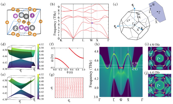 圖2 在半Huseler合金LiCaAs家族材料中揭示的在聲學(xué)支頂點(diǎn)與光學(xué)支最低點(diǎn)接觸處存在的拓?fù)鋯瓮鉅柭曌蛹捌浔砻鎽B(tài)