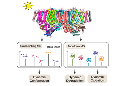 近日,中國科學院大連化學物理研究所生物分子結構表征新方法創新特區研究組研究員王方軍團隊在超大分子量膜蛋白質復合物組成和結構動態分析方面取得新進展,通過整合化學交聯質譜法和整體蛋白質組學分析,解析出光系統II復合物的動態光損傷分子機制。