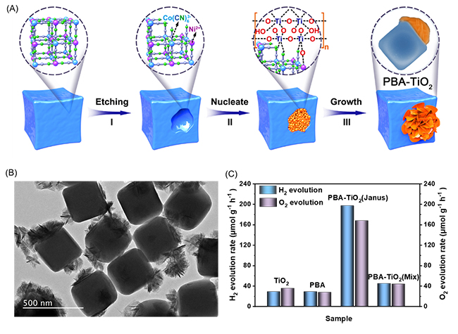 大連化物所構(gòu)筑PBA-TiO2 Janus微/納米結(jié)構(gòu)催化劑實(shí)現(xiàn)雙功能光催化水氧化/還原