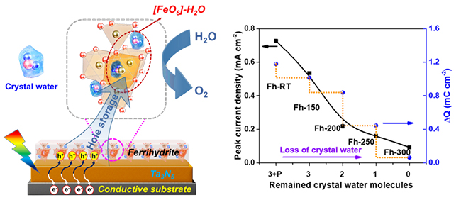 近日,中國科學院大連化學物理研究所太陽能研究部院士李燦、研究員施晶瑩團隊在太陽能光電催化分解水制氫研究方面取得新進展,揭示了保護氮化鉭(Ta3N5)光陽極的空穴儲存層——水鐵礦的水合結構與其空穴儲存功能之間的構效關系。