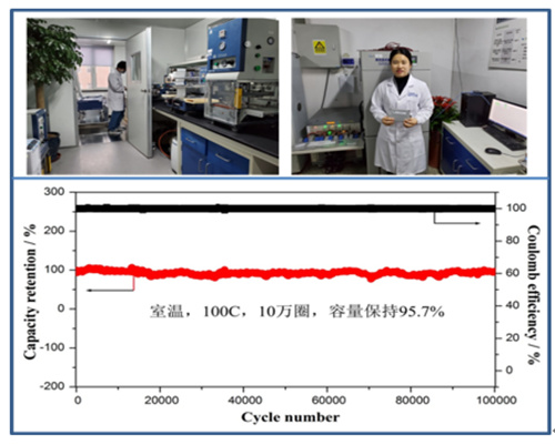 目前,以青島能源所為依托,在武建飛研究員和孫曉林高級工程師等人的共同努力下,先進儲能材料與技術研究組通過開發(fā)高容量和高倍率的正負極核心材料,負極可控工業(yè)化預嵌鋰關鍵技術、可修復高穩(wěn)定性負極表面SEI膜的構建,先進的高效電荷傳輸?shù)恼撾姌O制備技術以及可控的穿孔集流體設計技術等,成功研制出長循環(huán)壽命的碳基鋰離子電容器單體。其單體實際容量780F,高倍率(100C)循環(huán)10萬圈容量仍然保持95.7%以上(專利CN202011465356.4;CN202011465546.6)。