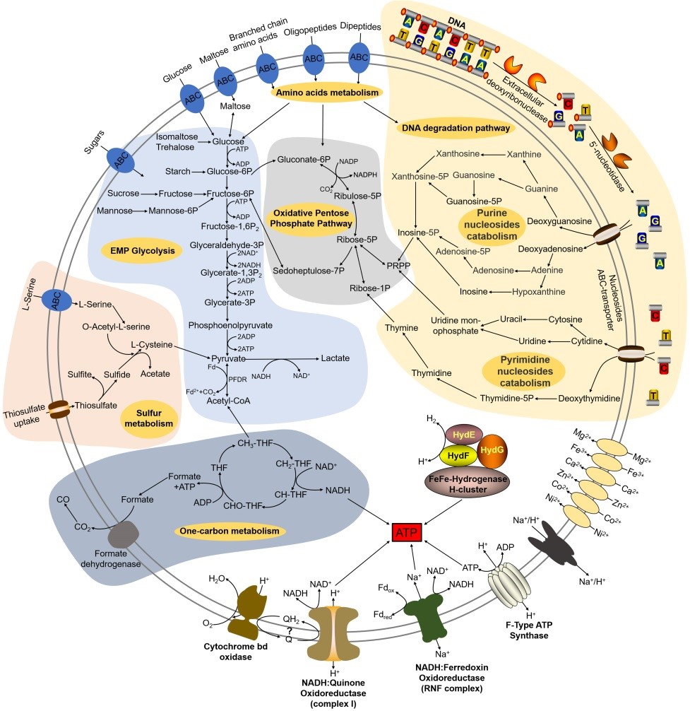 圖3 深海軟壁菌門細菌主要代謝通路模式圖