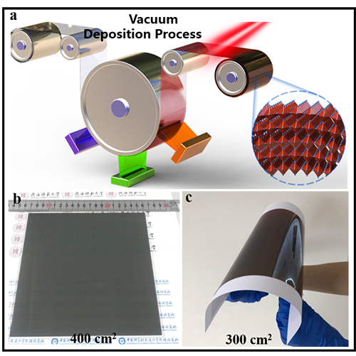 近日,中國科學院大連化學物理研究所薄膜太陽電池研究組研究員劉生忠團隊與陜西師范大學馮江山副研究員團隊合作,在大面積鈣鈦礦太陽電池研究方面取得新進展,采用真空沉積法并結合低溫退火策略制備了400cm2剛性和300cm2柔性高質量甲脒基鈣鈦礦薄膜。此外,該合作團隊成功將此薄膜運用到蒸發甲脒基鈣鈦礦太陽電池上,獲得了文獻可查蒸發鈣鈦礦太陽電池的最高轉換效率。