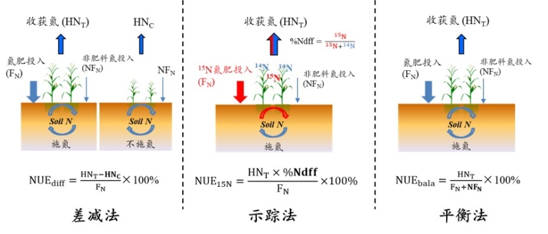 作物氮利用效率(NUE,Nitrogen Use Efficiency)是指肥料中氮元素被作物吸收利用的比例,是評價農田氮投入資源利用效率和環境影響一個重要指標,被科研人員、政府決策者、肥料企業和農戶等廣泛使用。然而,NUE雖然定義簡單,但卻并不容易直接量化。不同的人員往往根據自身不同需要和便利條件采用不同的量化方法,得到的結果差異較大。例如,我國糧食作物NUE平均水平被普遍認為在30%左右,而最近的研究顯示NUE卻達60%以上。不同量化方法間的差異導致不同研究間缺乏可比性,不利于農田氮循環的理解、田間氮肥的管理和政府決策的制定。