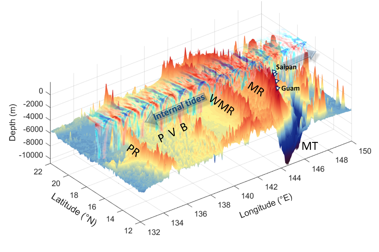 近日,中科院海洋環流與波動重點實驗室尹寶樹研究團隊通過構建高精度且萬米刻畫的數值模式,結合衛星高度計和參數化估計,首次給出馬里亞納溝弧盆區內潮三維能量傳播和耗散路徑,發現馬里亞納海脊是內潮能量主要源地,內潮可長距離輻射至深海海盆乃至深淵海溝,馬里亞納海溝起著內潮能量匯的作用。