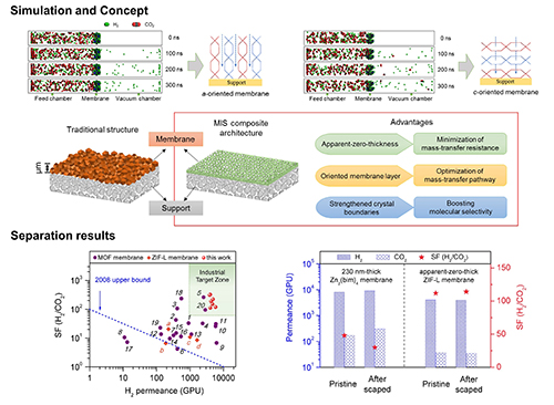 ZIF-L各向異相傳質(zhì)速率理論模擬、膜-載體互鎖型復(fù)合微結(jié)構(gòu)ZIF-L膜構(gòu)筑理念與分離結(jié)果