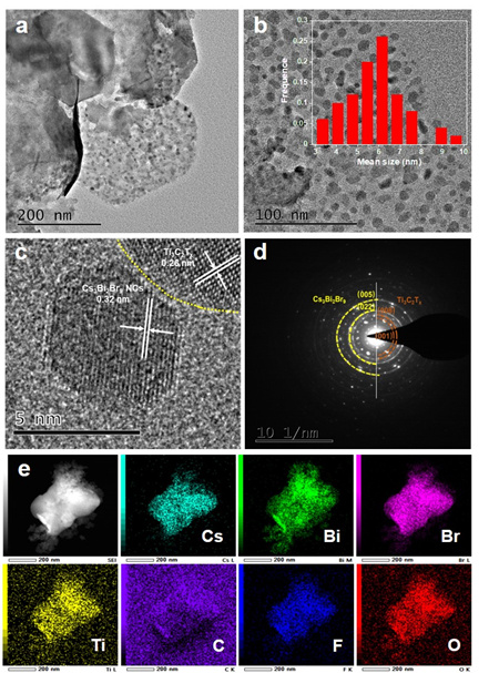 圖1.Cs3Bi2Br9/MXene異質(zhì)結(jié)催化劑高分辨透射電鏡圖