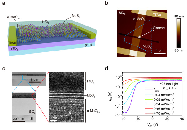 該團隊使用二維二硫化鉬作為溝道材料、氧化鉬(