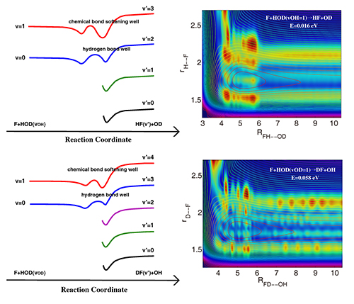 近日,中國科學院大連化學物理研究所分子反應動力學國家重點實驗室張東輝院士、劉舒研究員團隊在振動激發的F + HOD(vOH/vOD=1)反應中發現了由化學鍵軟化導致的Feshbach共振。