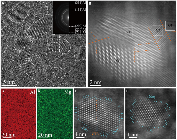 圖1. 受限晶體Al-Mg合金的結構與成分