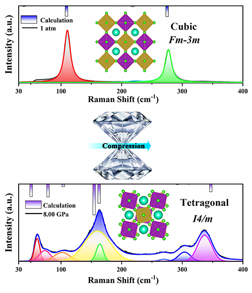 大連化物所利用自主研制的極端條件下穩(wěn)態(tài)和瞬態(tài)綜合光譜表征系統(tǒng),揭示了高壓下Cs2NaBiCl6晶體的發(fā)光機(jī)理