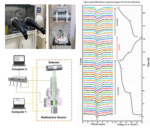 穆斯堡爾譜技術(shù)是通過觀測原子核對伽馬射線的共鳴吸收現(xiàn)象而研究核外電子舉動的科學(xué),該技術(shù)能量分辨率高,可觀察穆斯堡爾核素的超精細(xì)相互作用,表征功能材料中的穆斯堡爾核素,例如鐵和錫的物相、價態(tài)、配位結(jié)構(gòu)和磁性等。運用原位離子電池穆斯堡爾譜技術(shù),可以有效探究電極材料在真實工作狀態(tài)下電子、結(jié)構(gòu)、磁性的變化信息。該技術(shù)通過實時在線檢測電極材料的結(jié)構(gòu)和元素的價態(tài)變化等,為離子電池的充放電機理研究提供直觀指導(dǎo)。該裝置操作簡單,探測靈敏,是新型高效鋰/鈉/鉀等離子電池開發(fā)中研究電極材料的構(gòu)效關(guān)系及其充放電衰變機制的有效工具。