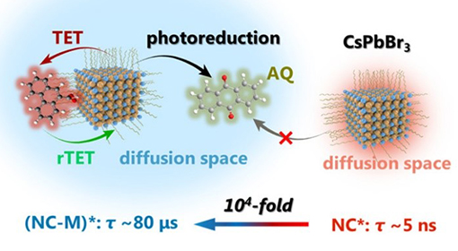 上述研究成果以“Long-Lived Delayed Emission from CsPbBr3 Perovskite Nanocrystals for Enhanced Photochemical Reactivity”和“Entropy-Gated Thermally Activated Delayed Emission Lifetime in Phenanthrene-Functionalized CsPbBr3 Perovskite Nanocrystals”為題,于近期分別發表在《美國化學會能源快報》(ACS Energy Letters)和物理化學快報(The Journal of Physical Chemistry Letters)上。上述文章的第一作者是大連化物所博士后何山。相關工作得到國家自然科學基金、中科院B類先導專項“能源化學轉化的本質與調控”等項目的資助。