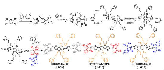 圖1. 小分子受體LA15-LA17的合成路線及結(jié)構(gòu)式