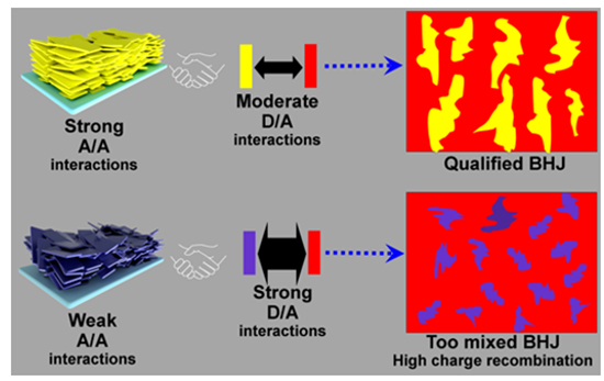 圖3. 分子間相互作用對BHJ形貌的影響示意圖