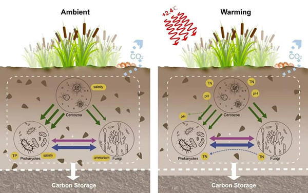 圖3 增溫改變濱海濕地土壤微生物層級互作