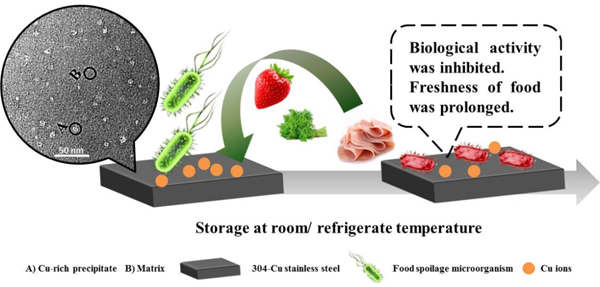 圖3 含銅抗菌不銹鋼延長(zhǎng)食品保鮮時(shí)間的機(jī)制示意圖