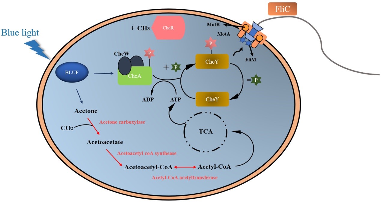BLUF介導(dǎo)深海細菌感知藍光及激活能量合成通路圖