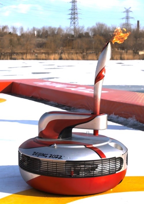 在火炬?zhèn)鬟f中,火炬手將奧運(yùn)圣火傳遞給一臺(tái)水陸兩棲機(jī)器人,水陸兩棲機(jī)器人手持燃燒火炬,沿冰壺賽道旋轉(zhuǎn)滑入冰洞口;一臺(tái)水下變結(jié)構(gòu)機(jī)器人向其靠攏,兩臺(tái)機(jī)器人手持火炬在水下精準(zhǔn)對(duì)接點(diǎn)火;水下變結(jié)構(gòu)機(jī)器人手持點(diǎn)燃火炬從冰洞口出水,將奧運(yùn)圣火傳遞給下一棒火炬手。