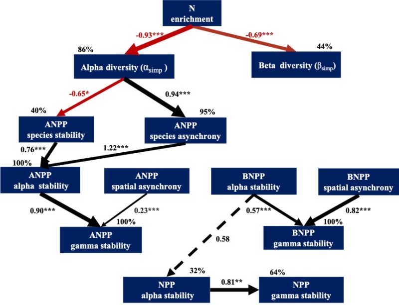 生產力的穩定性事關生態系統向人類社會提供服務的可持續供給。以往研究多關注地上生產力的穩定性,而對地下生產力以及總生產力的穩定性的變化規律和內在機制缺乏了解。人類活動導致陸地生態系統的活性氮沉降量顯著增加,厘清總生產力穩定性對氮沉降的響應規律對于預測生態系統服務的變化非常重要。