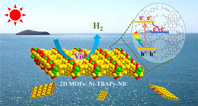 近日,中國科學院大連化學物理研究所寬光譜捕光材料與光催化創新特區研究組研究員章福祥等人在新型寬光譜捕光催化劑研發中取得新進展,設計合成了一種新結構的Ni-MOFs單晶,并將其剝離成納米帶。該新型催化劑具有寬光譜的可見光吸收,較好的水穩定性,以及可以在無助催化劑條件下展示出優秀的光催化水分解半反應制氫性能等,其可見光制氫表觀量子效率達到8.0%。