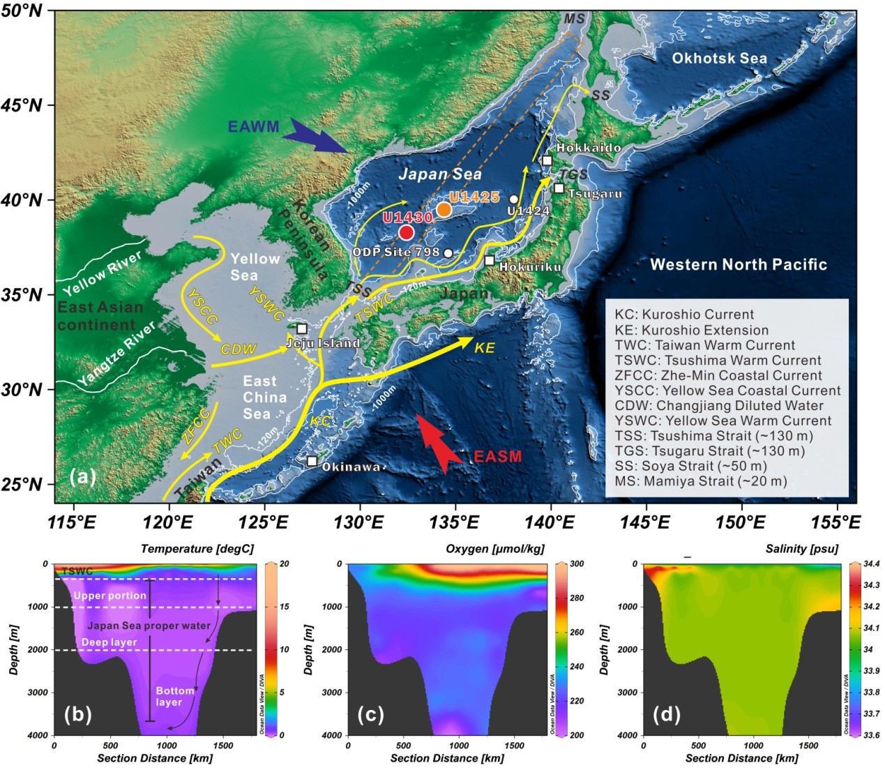 近日,國際經典古海洋與古氣候學期刊Paleoceanography and Paleoclimatology在線發表了中科院海洋所萬世明研究組在日本海氧化還原環境演化方面的最新研究成果。研究人員通過對四百萬年以來日本海氧化還原環境演變歷史進行重建,發現在構造尺度上其主要響應于日本海東北部與西南部海峽的開合,在軌道尺度上則主要受到東亞季風演化及海平面變化的影響。