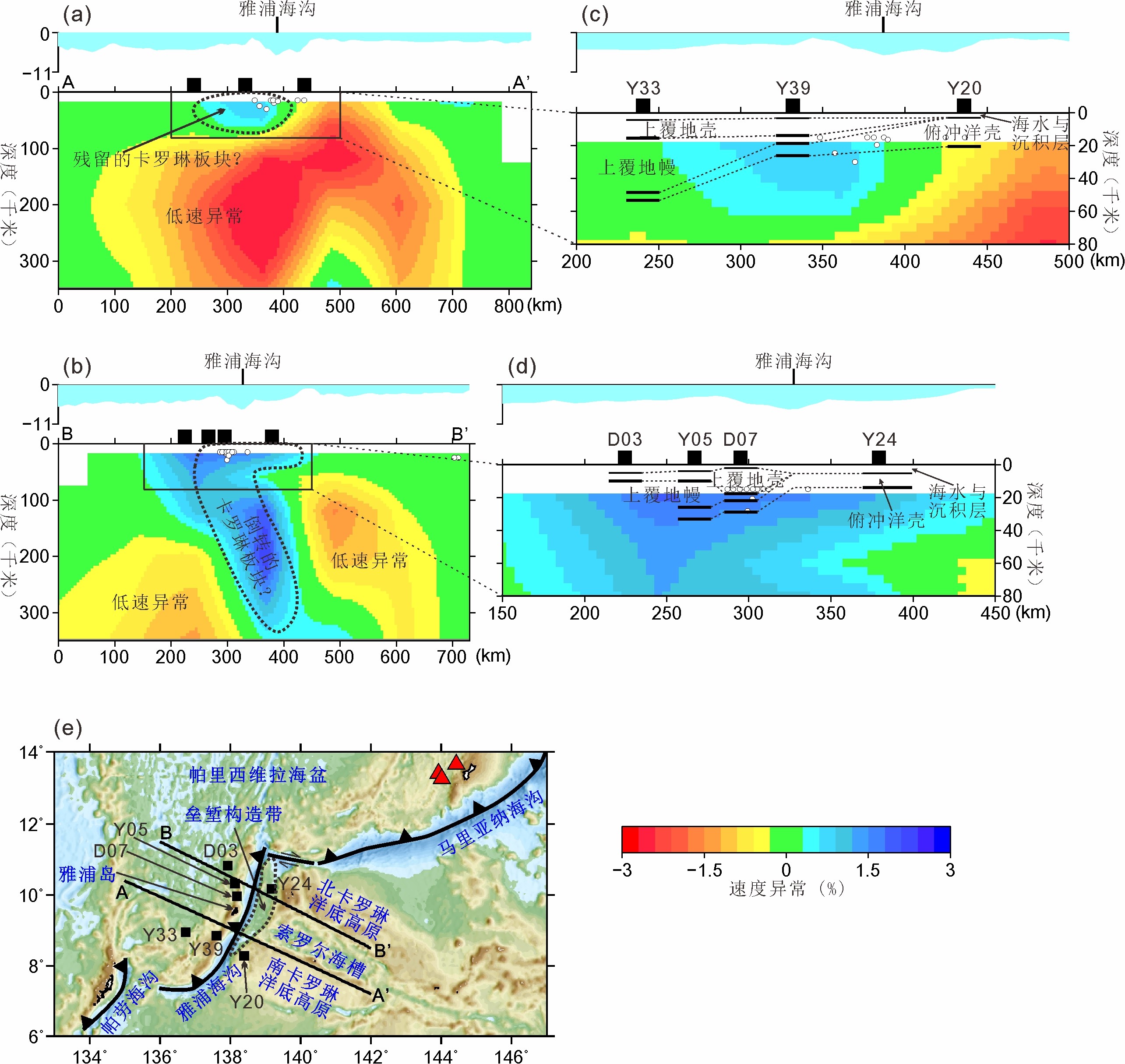 雅浦俯沖帶位于西太平洋馬里亞納俯沖帶南部,由于卡羅琳洋底高原的俯沖碰撞,該俯沖帶具有非常獨特的地形地貌及構造特征,如島弧-海溝間距小、地震活動性弱、無活躍的島弧火山活動等。淺部的地形地貌及構造活動受控于地殼及上地幔的深部結構,但由于該地區缺少地震臺站,雅浦俯沖帶的深部速度結構及板塊形態尚未可知。而卡羅琳洋底高原目前正同時處于初始張裂與初始俯沖階段,這在地球上是非常罕見的,其對板塊形態的影響以及洋底高原進入俯沖帶前的變形尚缺少深入研究。