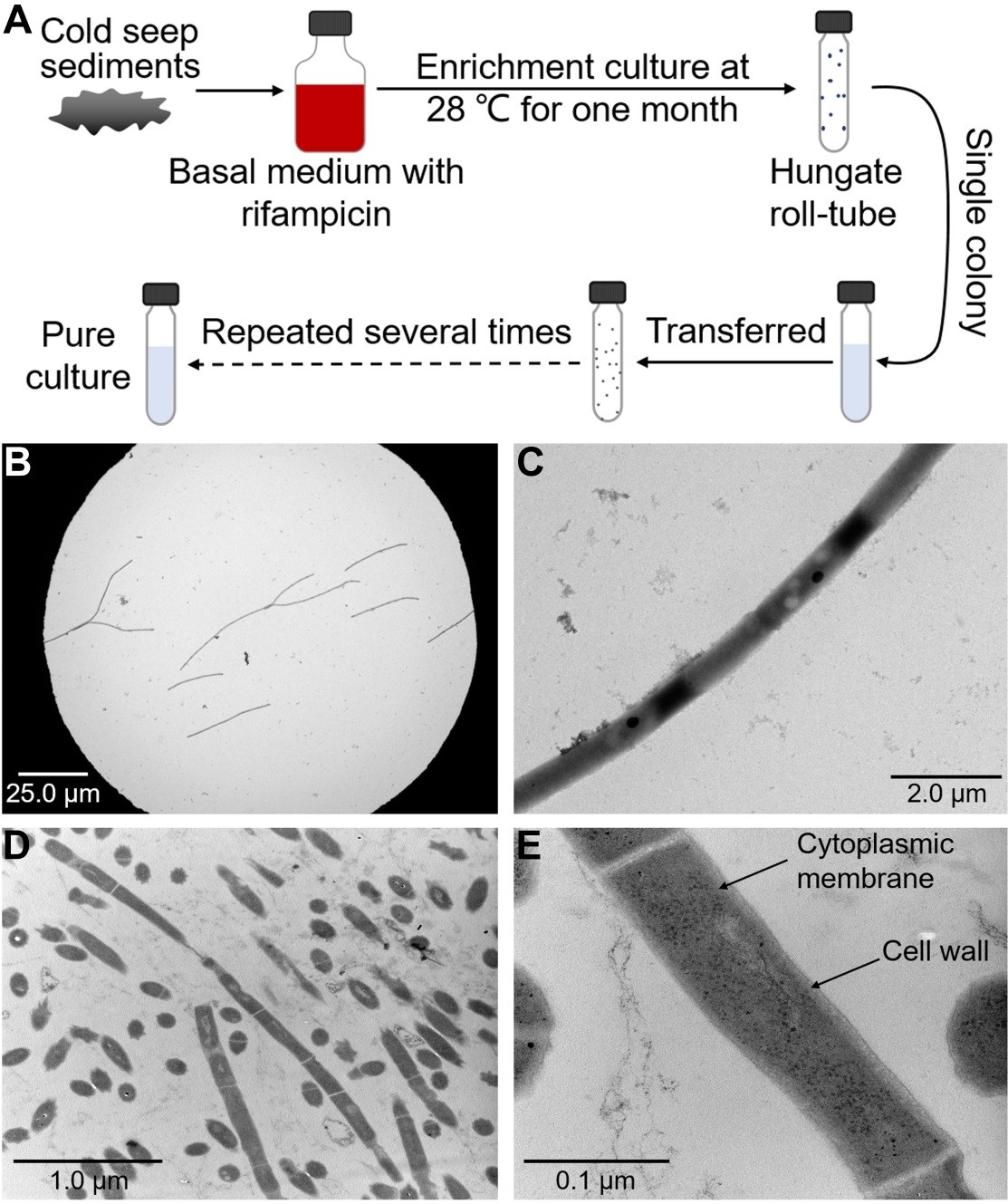 綠彎菌門,以前被稱為“綠色非硫細(xì)菌”,是細(xì)菌域中一個多樣性較高的類群。綠彎菌門的成員廣泛分布在海洋生態(tài)系統(tǒng)中,且豐度非常高,但深海生境中被培養(yǎng)的類群屈指可數(shù),屬于典型的難培養(yǎng)微生物,其生物學(xué)特性在國內(nèi)外基本處于空白。目前,綠彎菌門成員分為9個綱 (包括 14個目,19個科,34個屬,56個種),其中有些綱僅含有1個物種,這表明綠彎菌門的大多數(shù)成員尚未獲得純培養(yǎng),亟需建立創(chuàng)新型分離培養(yǎng)手段獲取更多的綠彎菌。